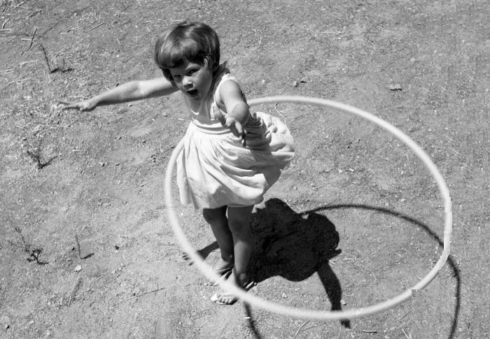 The days following the arrival of the hoop were spent in frenzied practice in the garden (and once - only once - indoors, when I knocked an ornament off the sideboard and was told in no uncertain terms that if the hoop was found indoors again it would be snapped in two and instantly disposed of - I didn’t dare ask where). I got to be quite an expert hula hooper, shimmying it up and down my body, round my neck, arms and legs. Just recently, I found a hula hoop at a play centre and thought I’d have a go. I was shocked to discover that all skill had left me, as the hoop rapidly spun to the floor, despite my energetic gyrating, and lay there looking up at me as if to say, ‘that was nearly seventy years ago, woman, get a grip.’